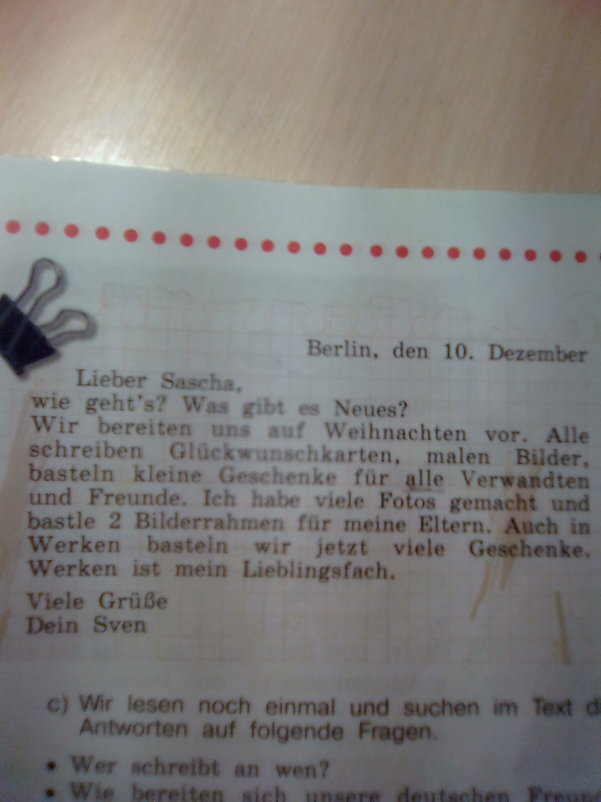 Мы готовимся к Рождеству. Все пишут поздравительные открытки, рисуют рисунки,мастерят маленькие подарки для всех родственников и друзей. Я сделал много фотографий и мастерю 2 картинные рамы для моих родителей. Также на трудах мастерим мы сейчас много подарков.