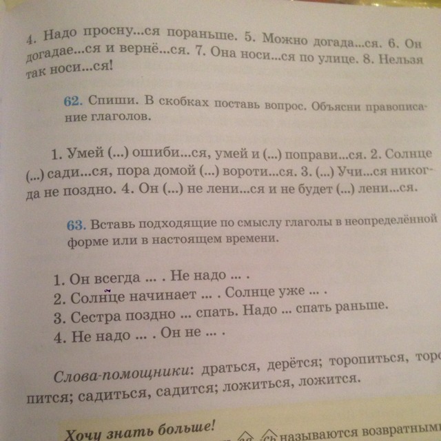 Умей ошибиться,умей и поправиться.Солнце садится,пора домой воротиться.Учиться никогда не поздно.Он не ленится и не будет лениться