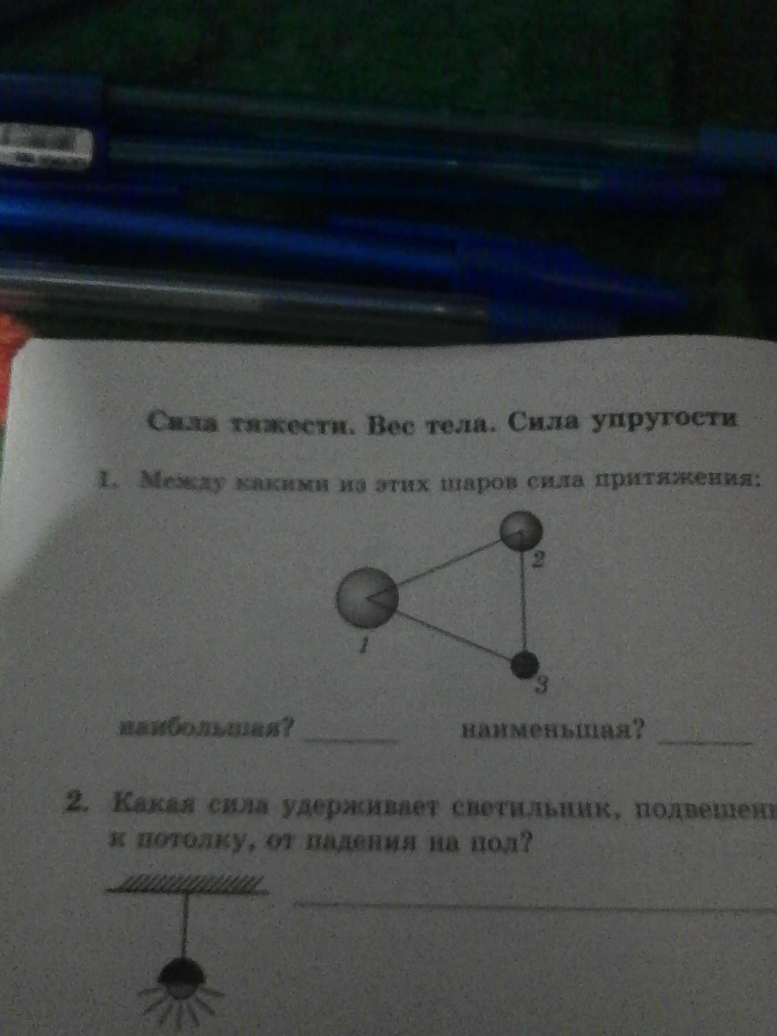 между шариками один и два сила притяжения наибольшая так как их масссы больше массы шарика 3