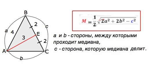 М²=(2АВ²+2АС²-ВС²)•1/4 =>