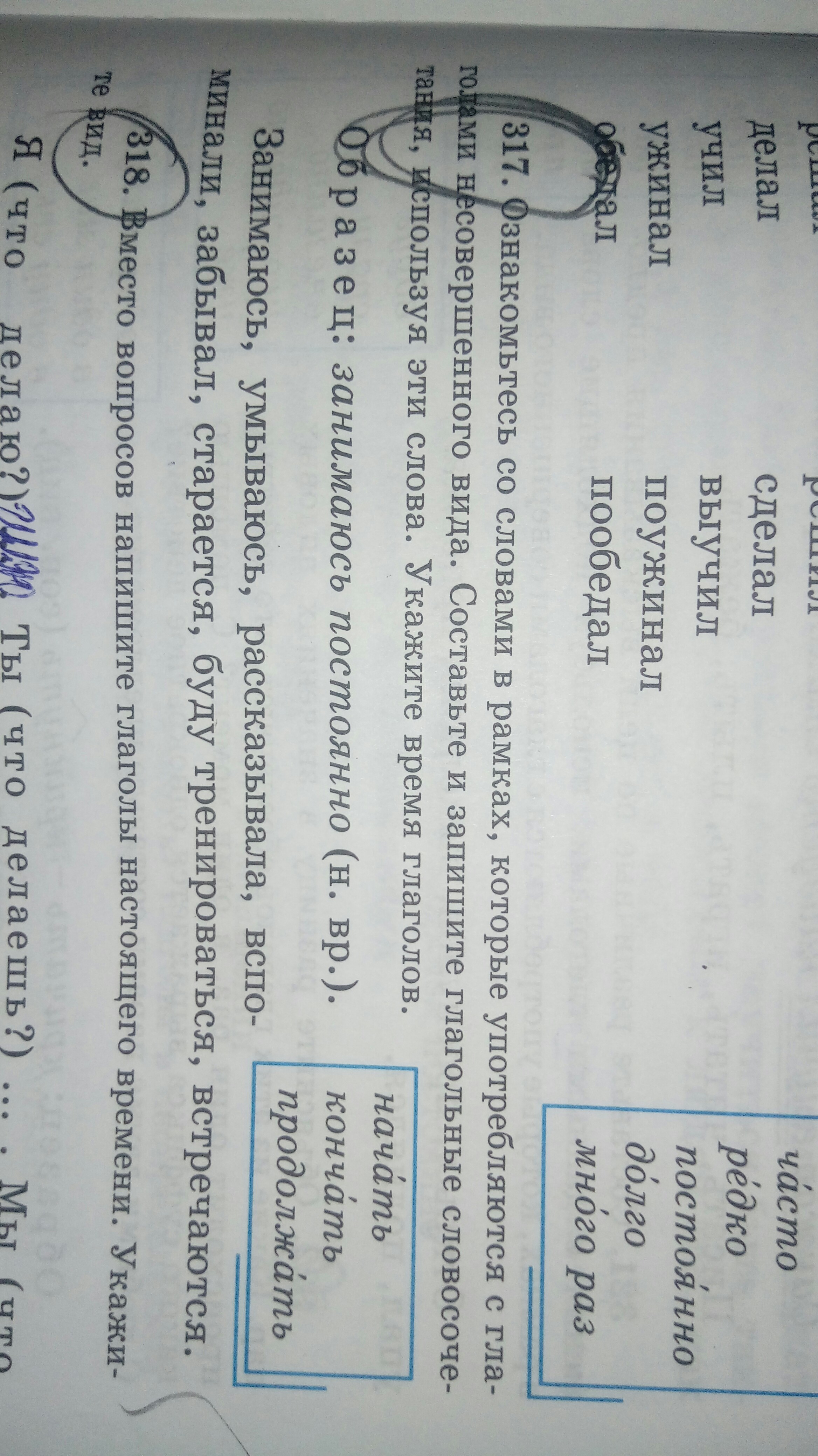 Умываюсь утром(н.вр), рассказывала стих(пр.вр), вспоминали вместе(пр.вр), забывал постоянно(пр.вр), старается помочь(н.вр),буду тренироваться усерднее(буд.вр), встречаются вечером(н.вр)