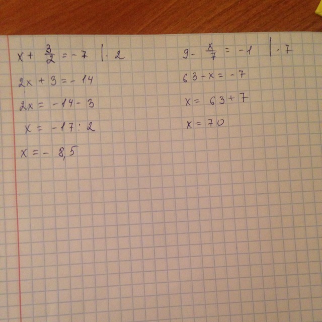 При каких значениях переменной х обращается в верное числовое равенство уравнение х+3/2≡-7, 9-х/7≡-1
