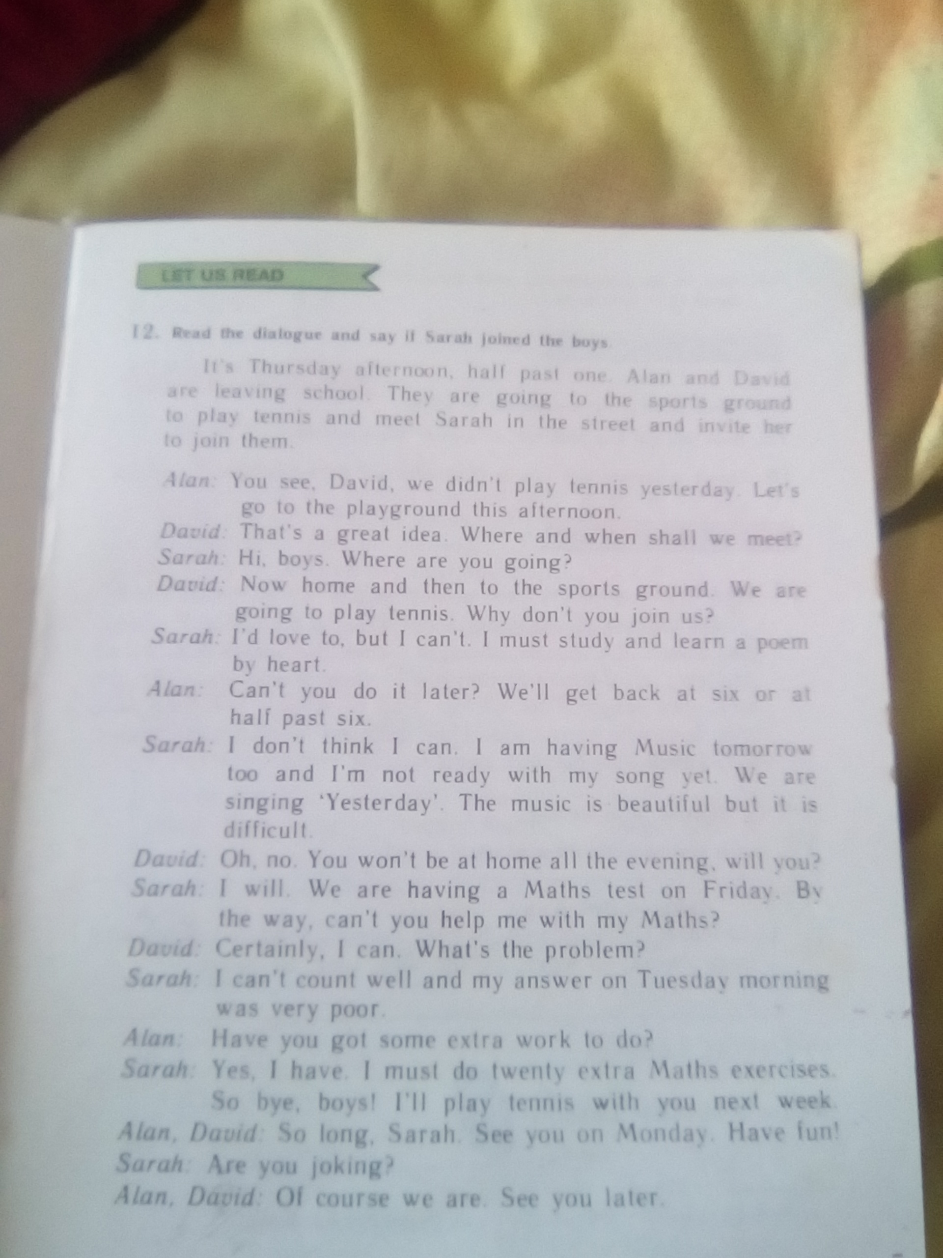 Ты видел. Девид,мы не играли в теннис вчера .давай пойдём на корд днём .