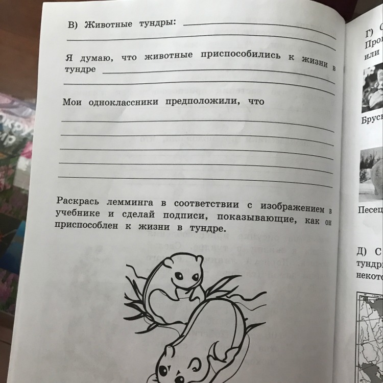 Я думаю , что животные приспособились к жизни в тундре из за тёплого меха, жизни под покровом снега, запас жира на зиму, залегание в спячку.