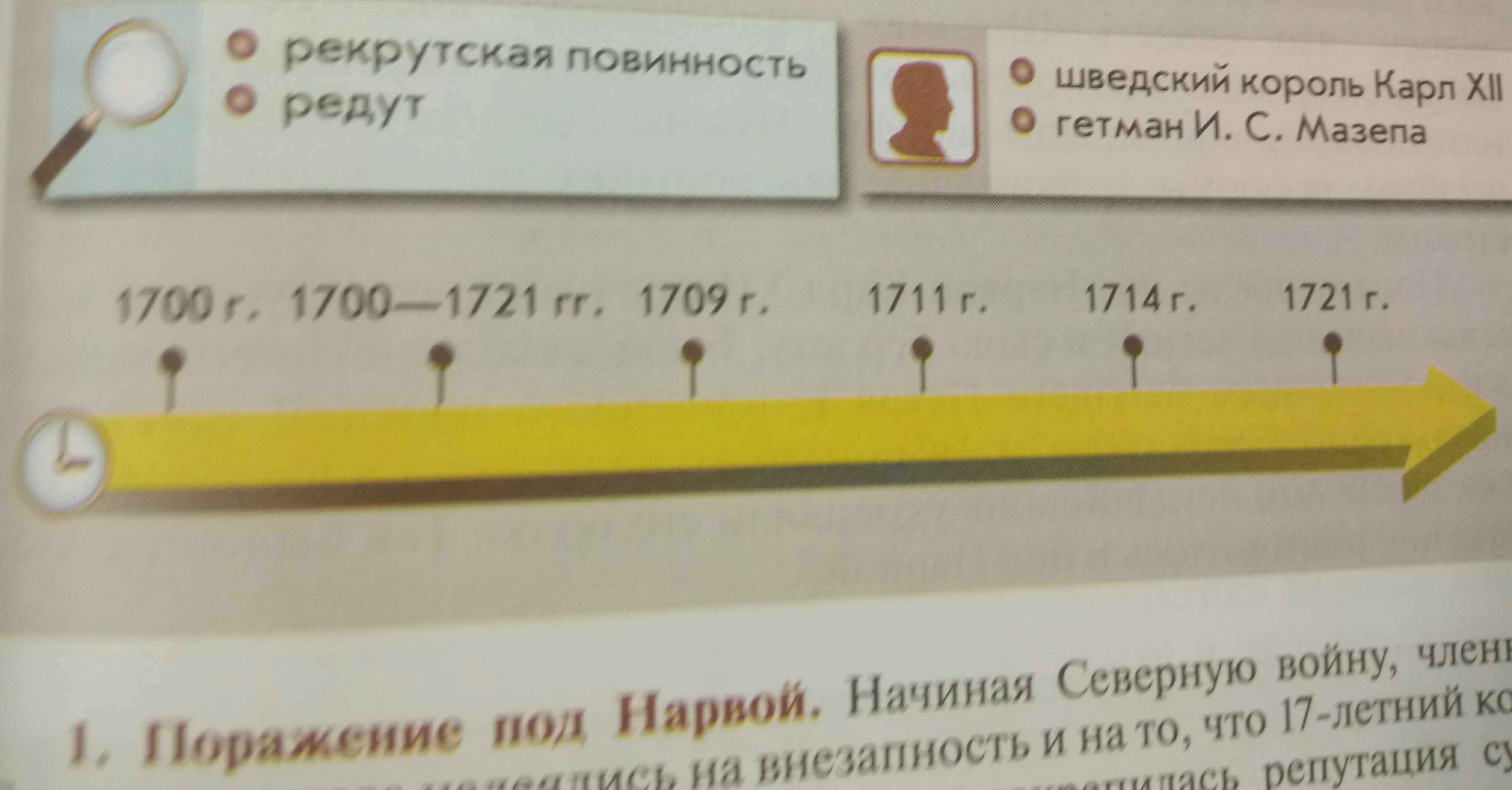 1) Прутский поход Петра 1; 2) поражение русской армии под нарвой; 3) Полтавская битва; 4) Гангутское сражение; 5) подписание наштадского мира; 6) Северная война.