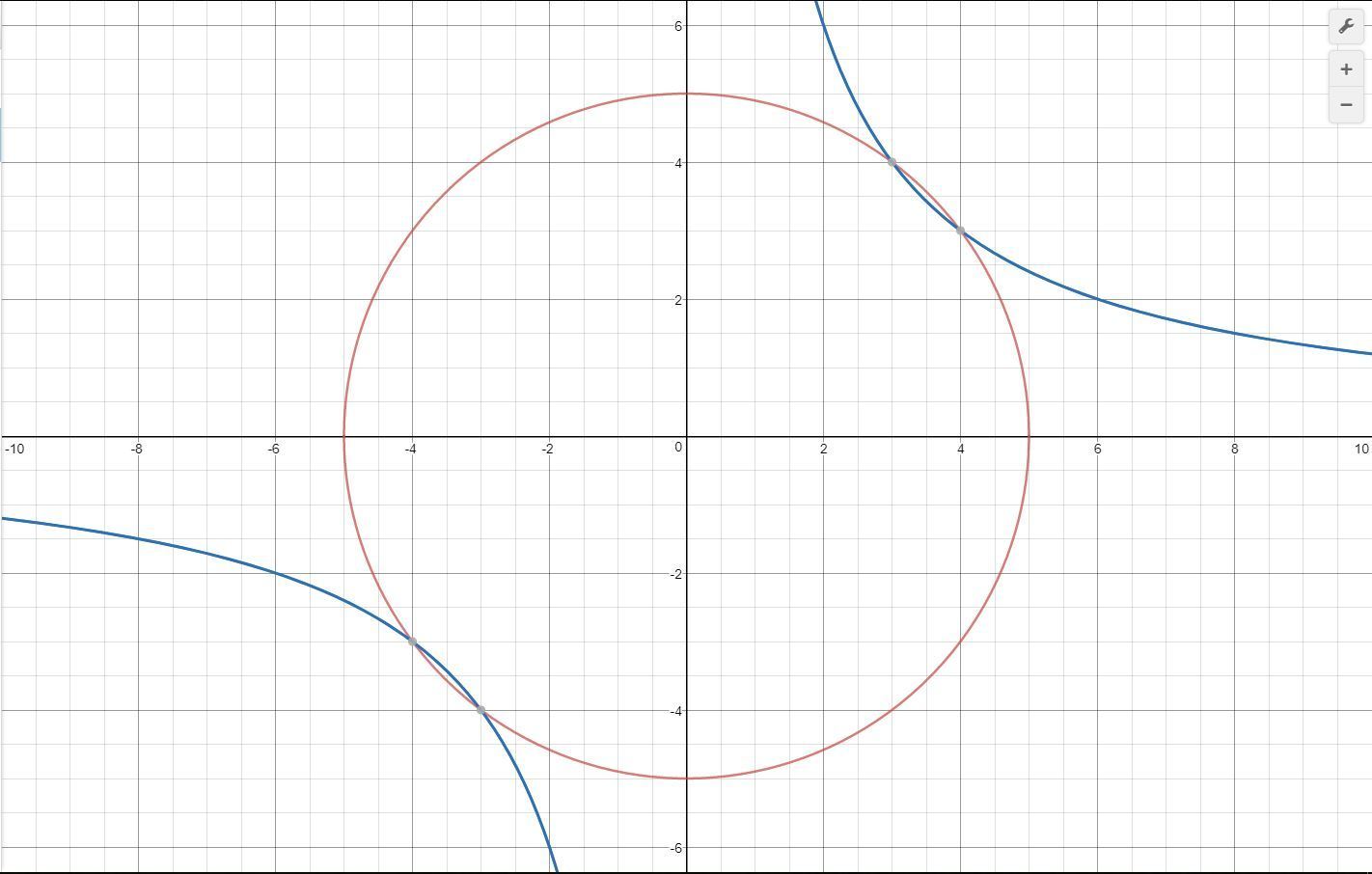 решение системы есть 4 точки: (3,4); (4,3); (-3,-4); (-4,-3)
