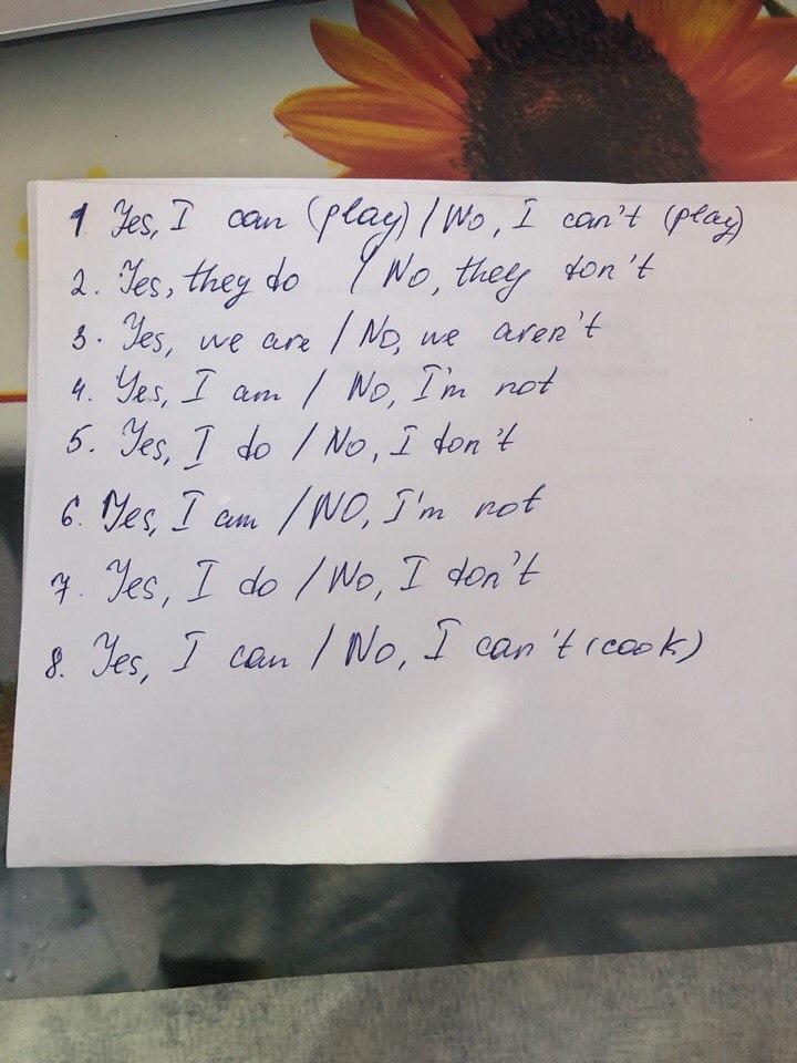 Помогите пожалуйста ответить на эти вопросы по английскому, и положительно, и отрицательно. Кратким ответом, н-р: Yes I can/No I can't и т.д.