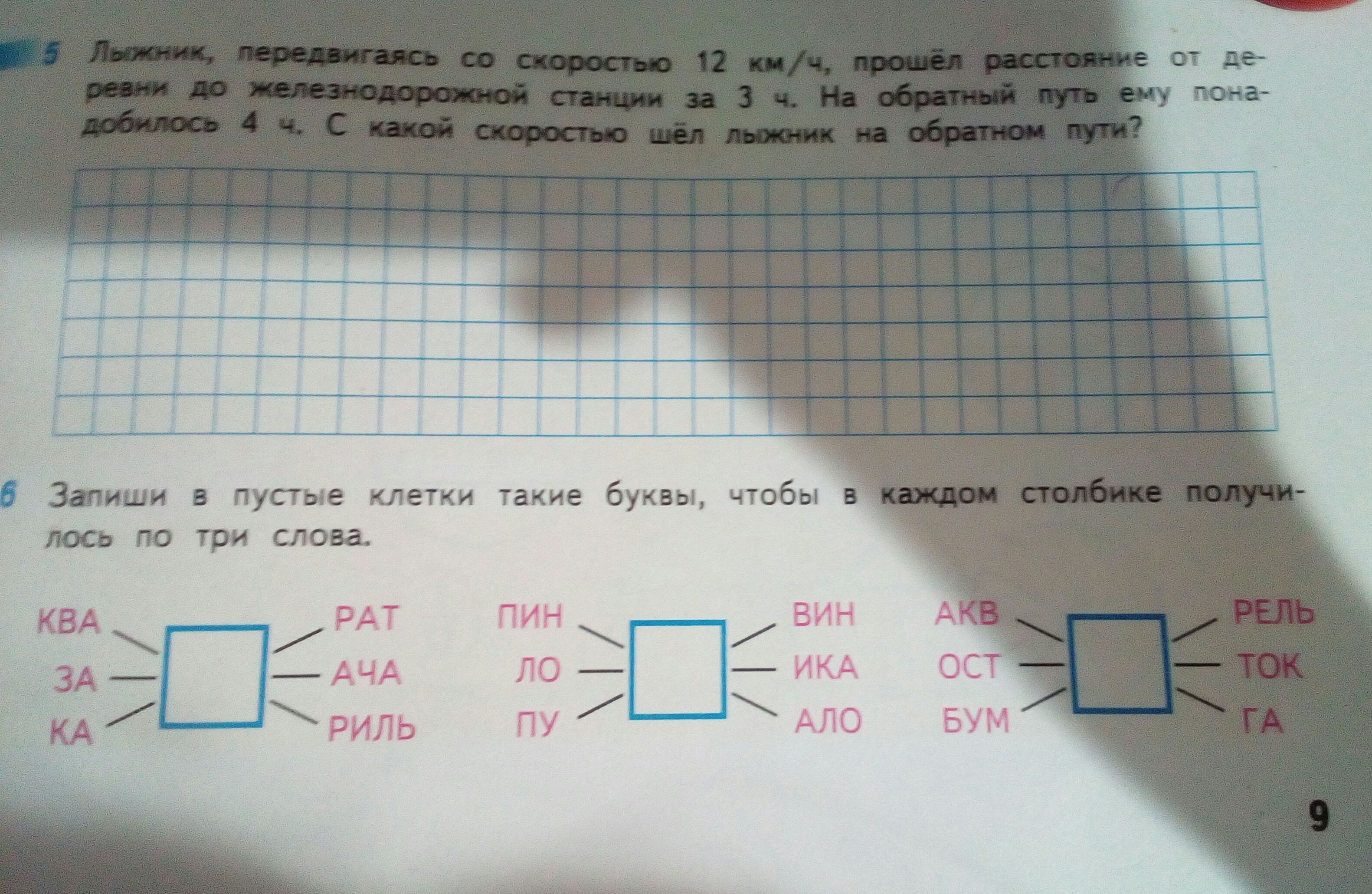 36 : 4 = 9 (км/ч) - скорость на обратном пути