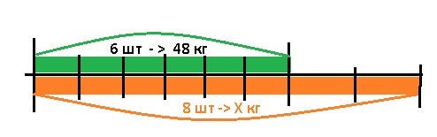 1) 48 кг : 6 шт = 8 кг/шт