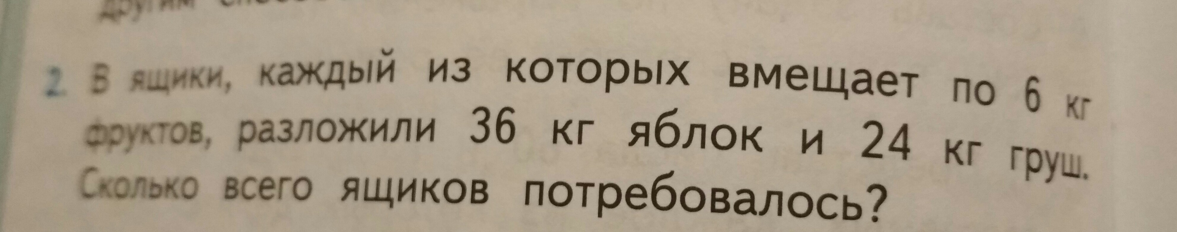 в ящиках каждый из которых вмещает по 6 кг фруктов разложили 6 килограмм яблок и 24 килограмм груш Сколько всего ящиков потребовалось