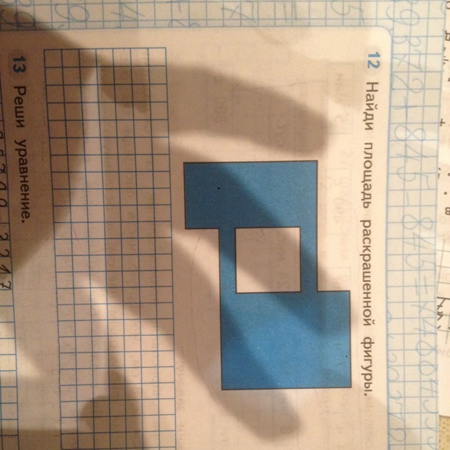 Раздели эту фигуру на 3 части : большой запрещенный прямоугольник с белым квадратом по середине и 2 мал. прямоугольника. Найди их площади. Потом найди площадь белого квадрата. Сложи площади 2 мал. прямоугольника и большого с квадратом по середине. Теперь отнями площадь белого квадрата от общей площади 3 прямоугольников.