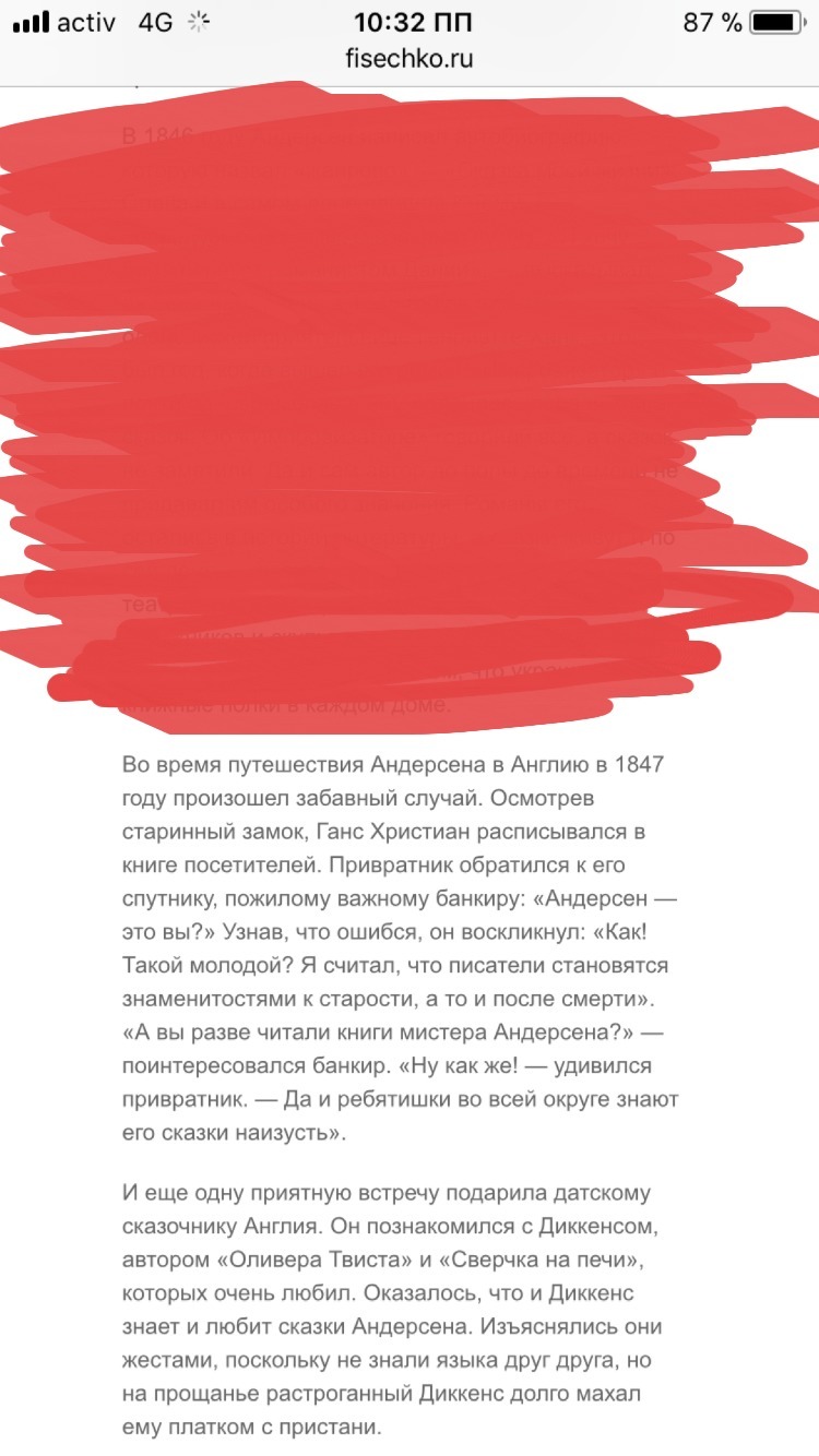 3)любовь к сказкам Ганса Зристиана Андерсона