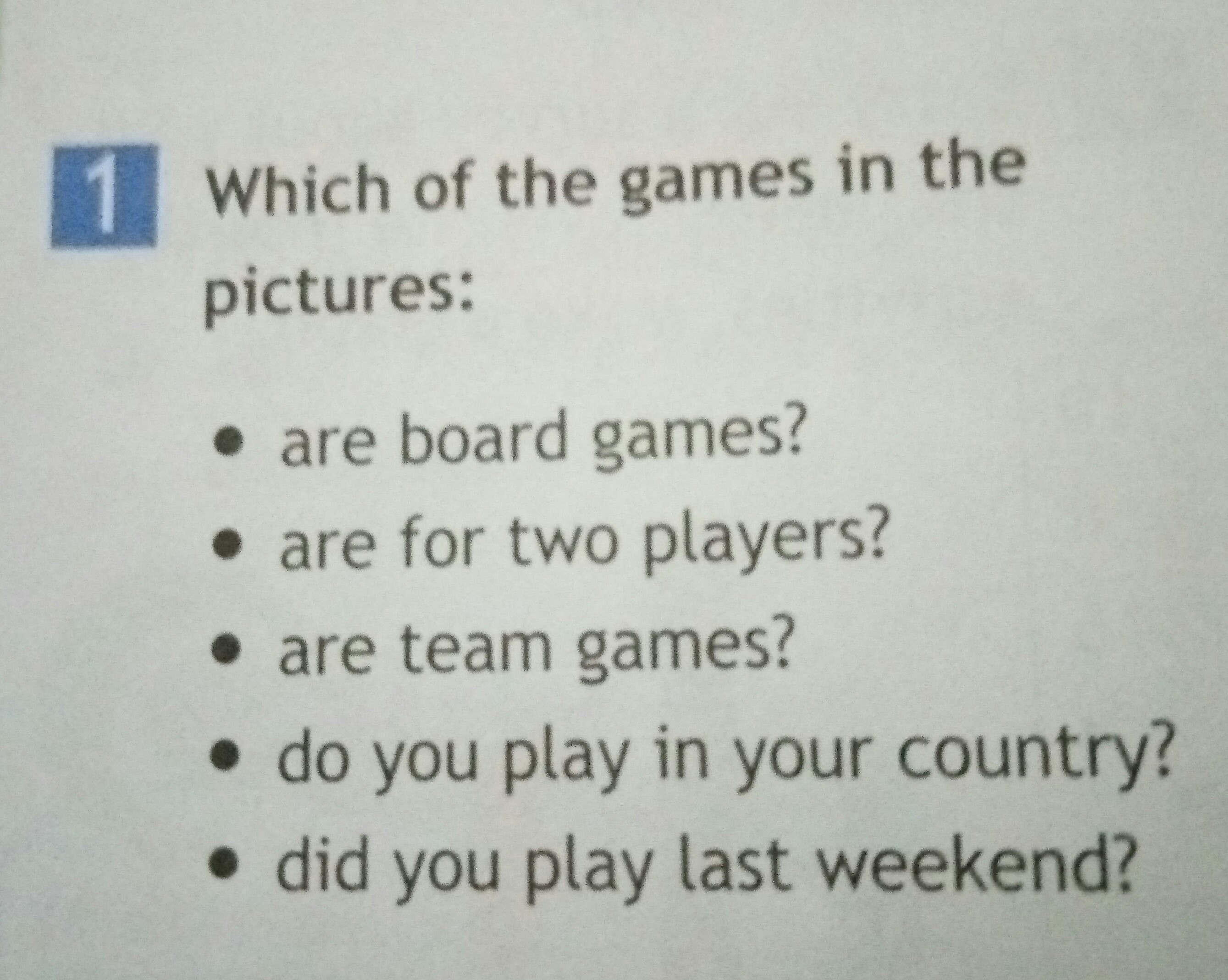1. Это настольная игра? 2.Она для 2 игроков? 3. Это командные игры? 4.Вы играете в своей стране? 5.Вы играли в прошлые выходные?