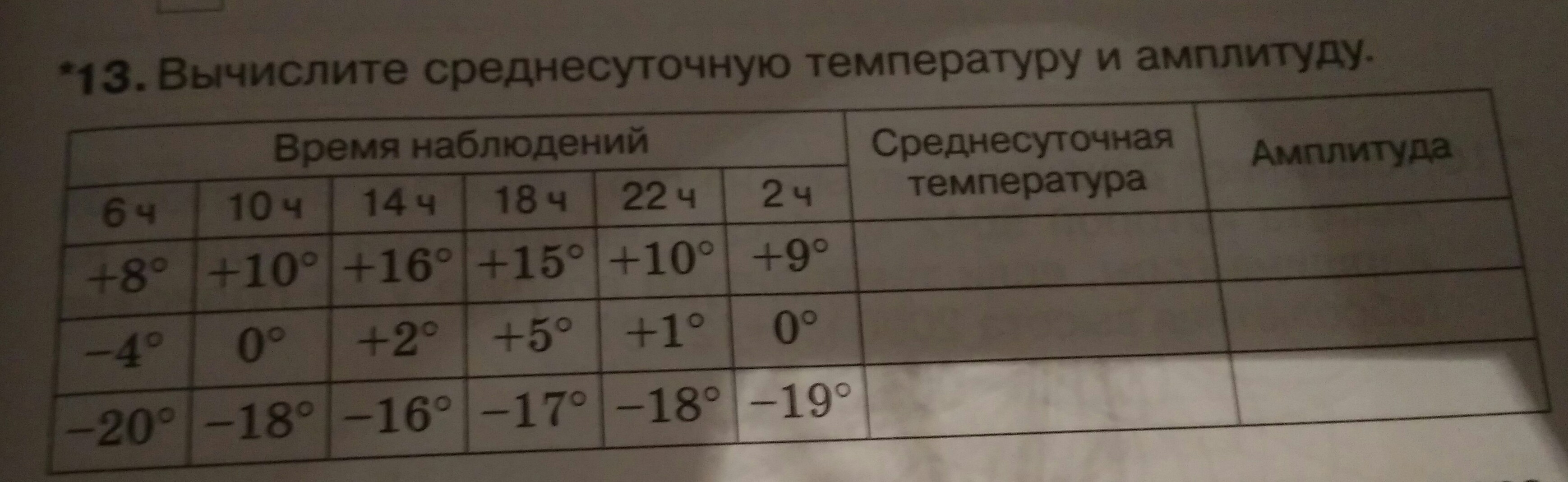 в 1 все сложи, т. к. знаки одинаковые и подели на 6 - это 1 ответ. Затем из самой выс. темп вычти сам низк (маленькую). разница и есть амплитуда.