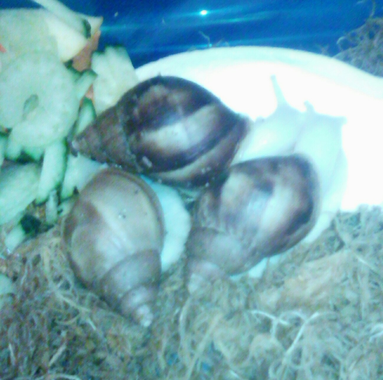 ахатины - улитки, питаются овощами и фруктами, для твердости раковины надо давать мел
