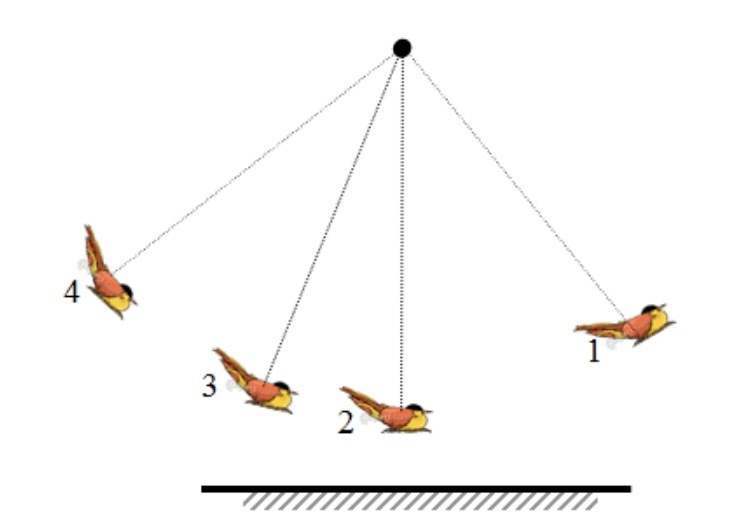 6)Какая точка у нити с птичкой состветствует максимальному отклонению от положения равновесия?