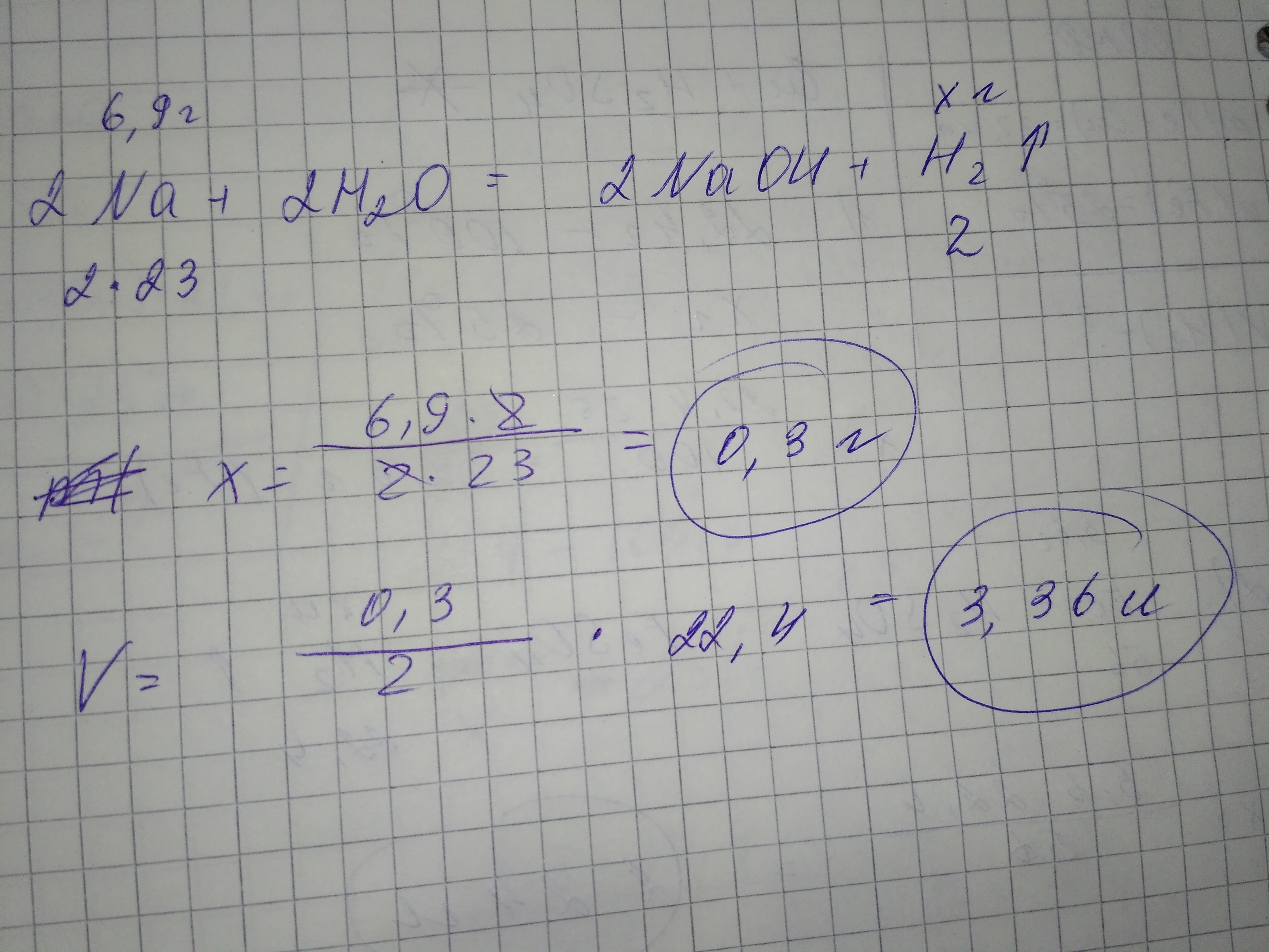 каковы объем (н.у.) и масса водорода, выделившегося при взаимодействии 6,9 г металла натрия с водой?