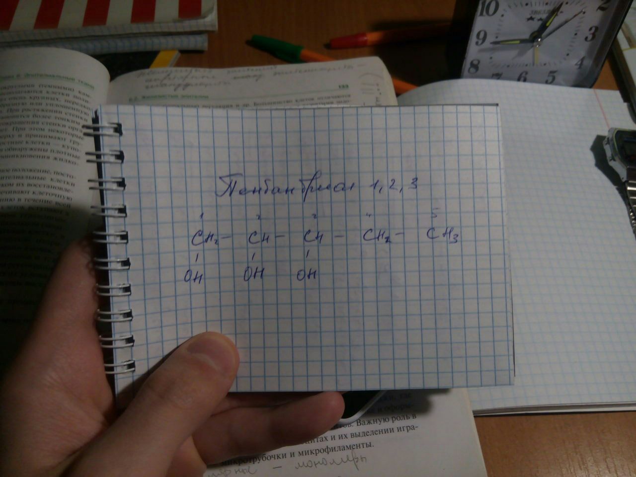 пронумеровав скелет от одного до пяти, первым трём приставим группу (ОН). и того пентантриол - 1,2,3