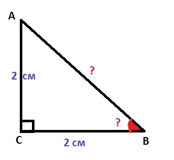 ΔABC - прямоугольный, ∠С = 90°; AC = BC = 2 см - равнобедренный ⇒