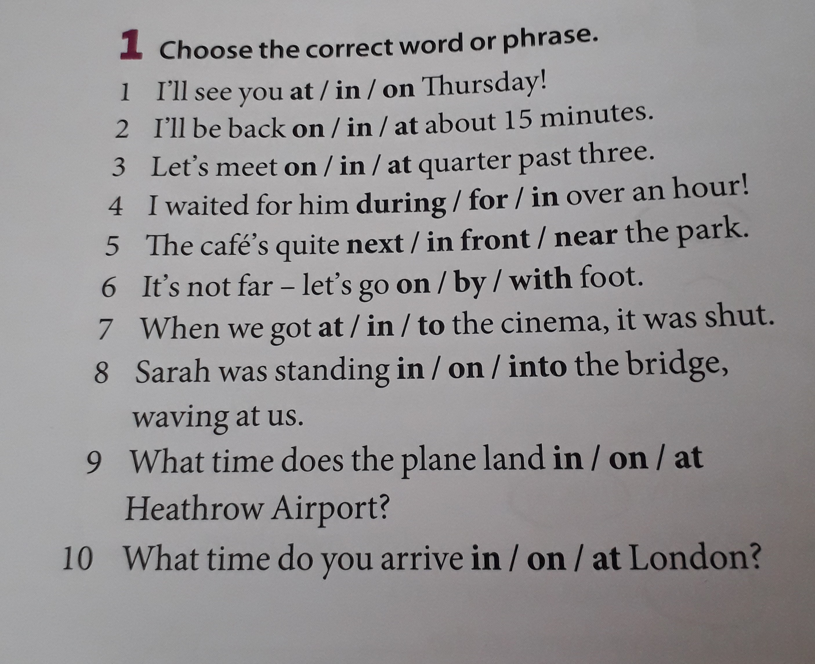 1. on 2. in 3. at 4. during 5. near 6. on 7. at 8. on 9. at 10.in