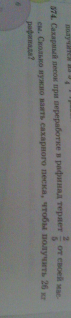 26÷3/5=43 1/3 кг. нужно взять сахарного песка, чтобы получить 26 кг рафинада.
