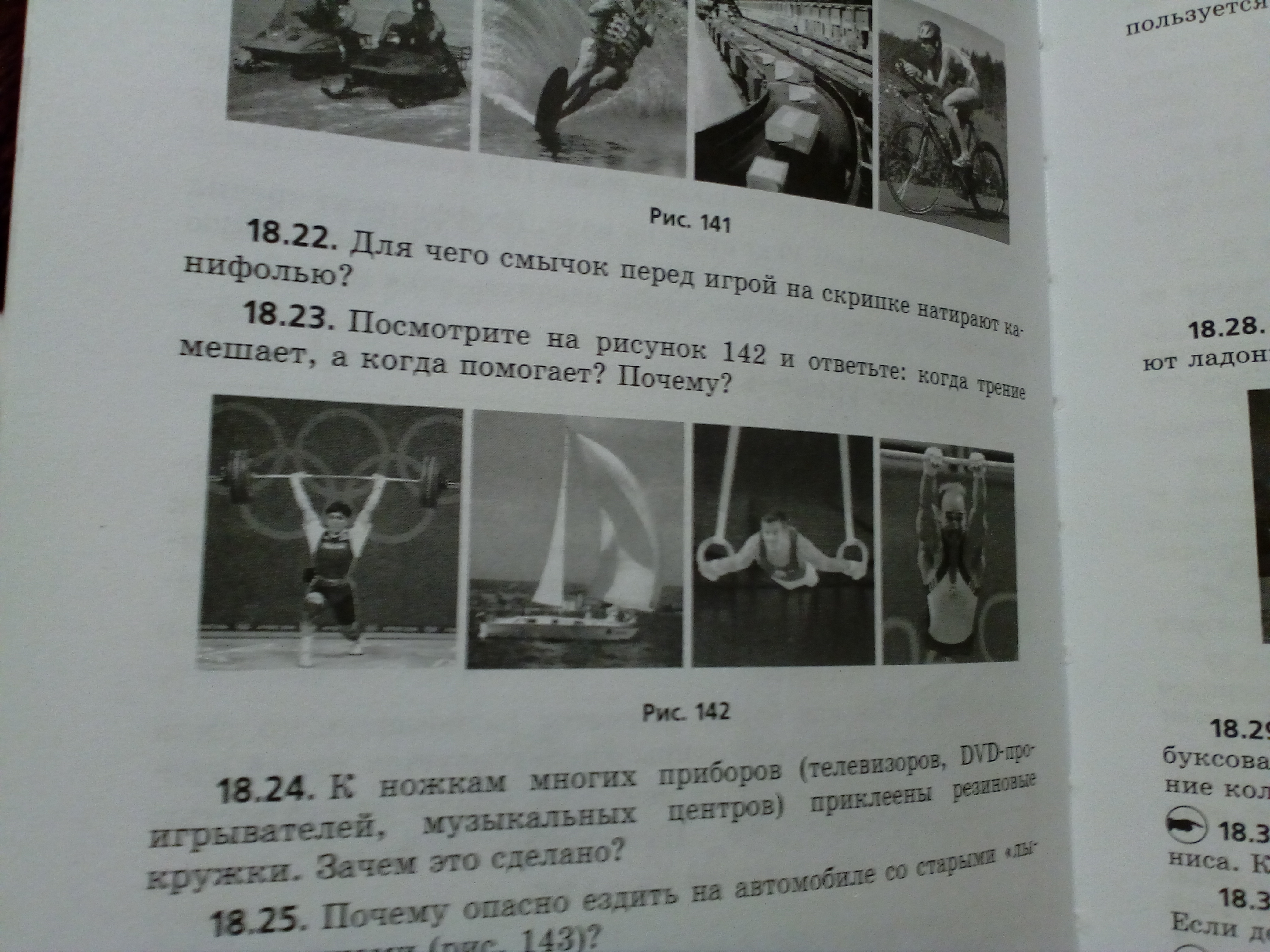 Ответ 3 и 4 рисунок. Потому спортсмены ваполняют движения с помощью рук. Сила трения направлена против силы трения