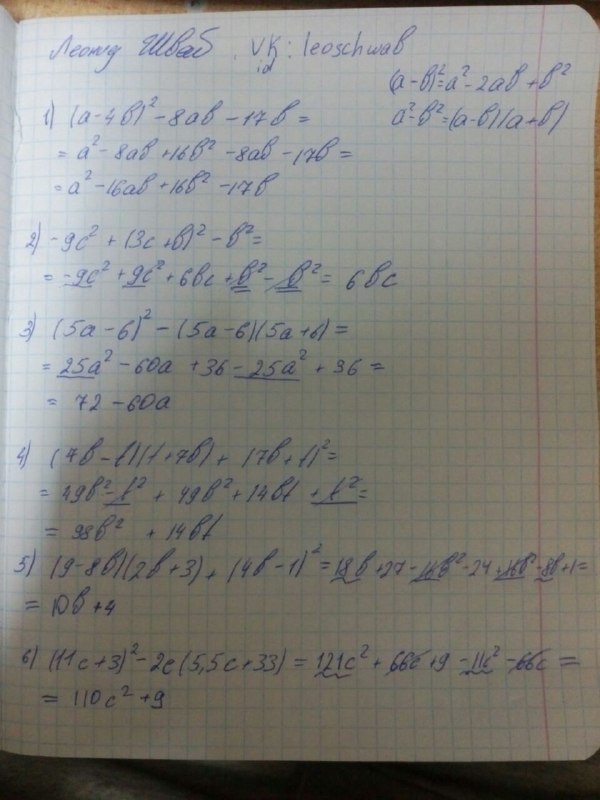 5 задание неверно. (9 - 8b)(2b+3) + (4b-1)² =18b +27-16b²-24b+16b²-8b+1=28-14b
