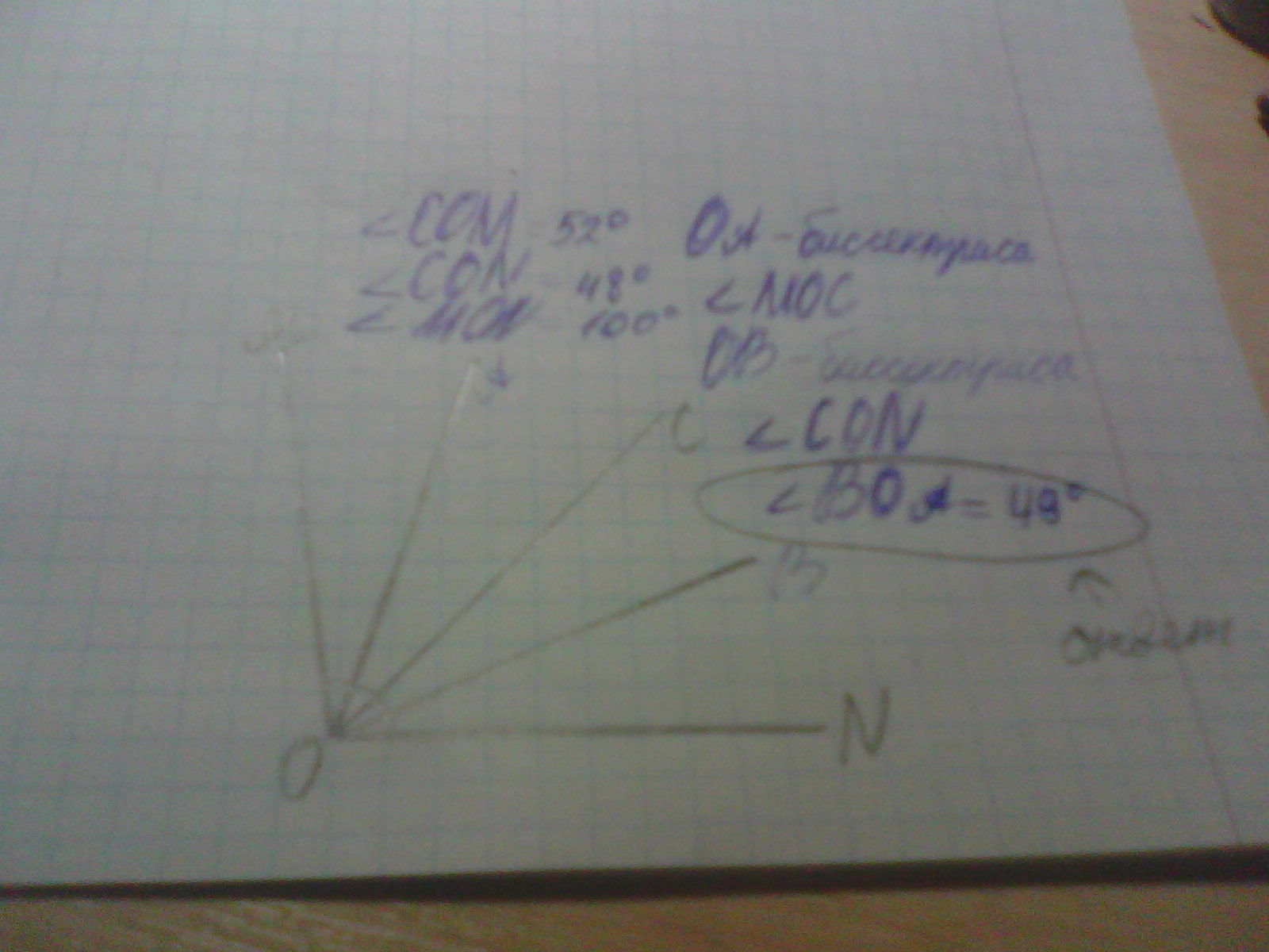 Начертите в тетради прямой угол MON . Проведите внутри него луч ОС. Какой будет величина угла между биссектрисами углов МОС и СОN.