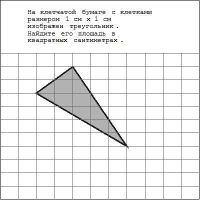 На клетчатой бумаге с клетками размером 1 см * 1 см изображён треугольник.