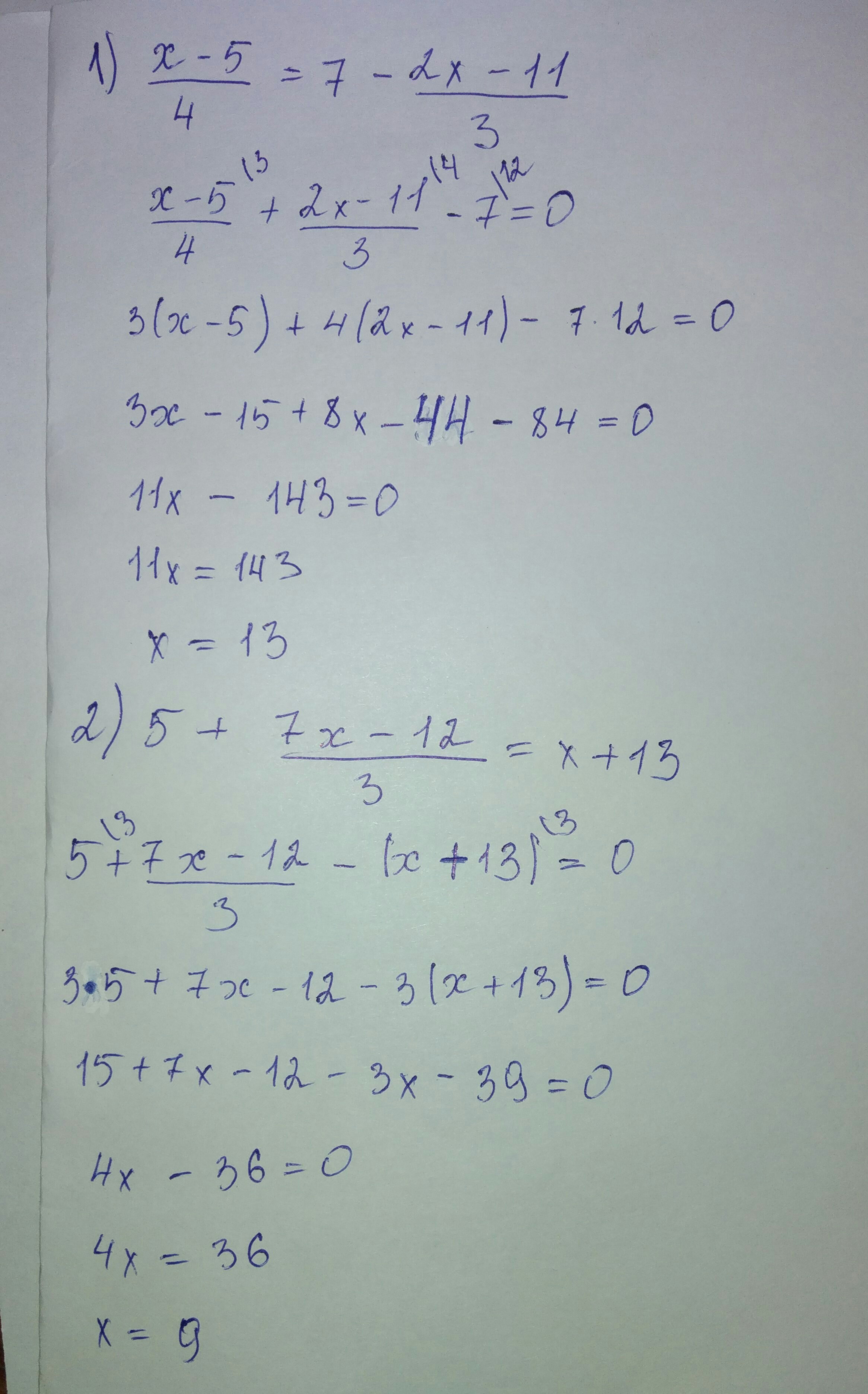 1) х-5/4=7-2х-11/3 должно получиться 13