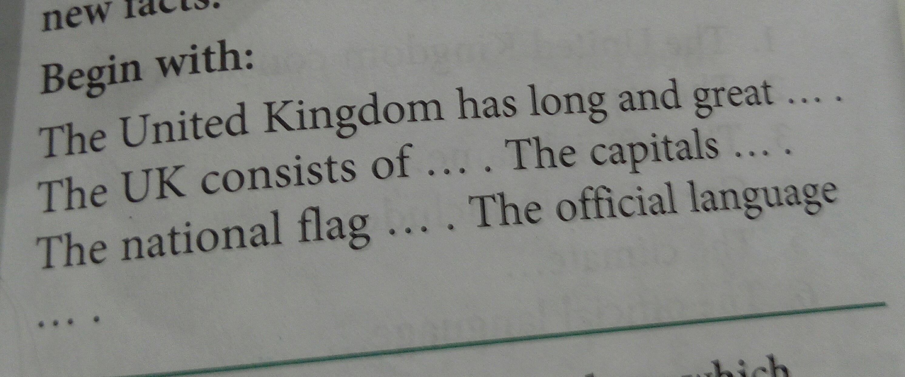 four parts Wales, England, Northen Ireland,