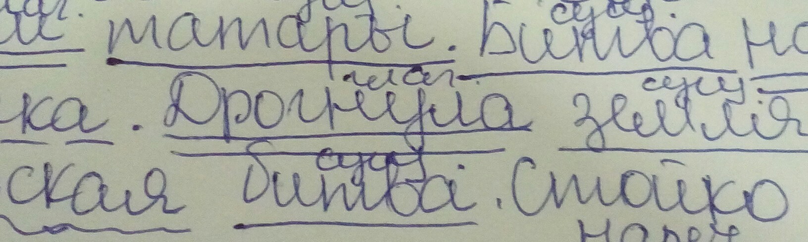 В- предлог; густом(каком?)- прилаг.; тумане(где?в чём?)- обстоят.; выстроилось(что сделало?)- глагол; русское(какое?)- прилаг.; войско(что?)- сущ. С- предог; Красного(какого?)- прилаг.; холма(с чего?)- дополн.; повалили(что сделали?)- глагол; татары(кто?)- сущ. Битва(что?)- сущ.; начиналась(что делала?)- глагол; с-предлог; поединка(с чего?)- дополн. Дрогнула(что сделала?)- глагол; земля(что?)- сущ. Началась(что сделала?)- глагол; Куликовская(какая?)- прилаг.; битва(что?)- сущ. Стойко(как?)- наречие; держался(что делал?)- глагол; Передовой(какой?)- прилаг.; полк(что?)- сущ.