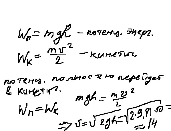 50Баллов! С высоты 10м падает тело. С помощью з-на сохранения энергии определить скорость его падения на землю. Полное объяснение + оформить на листке плс.