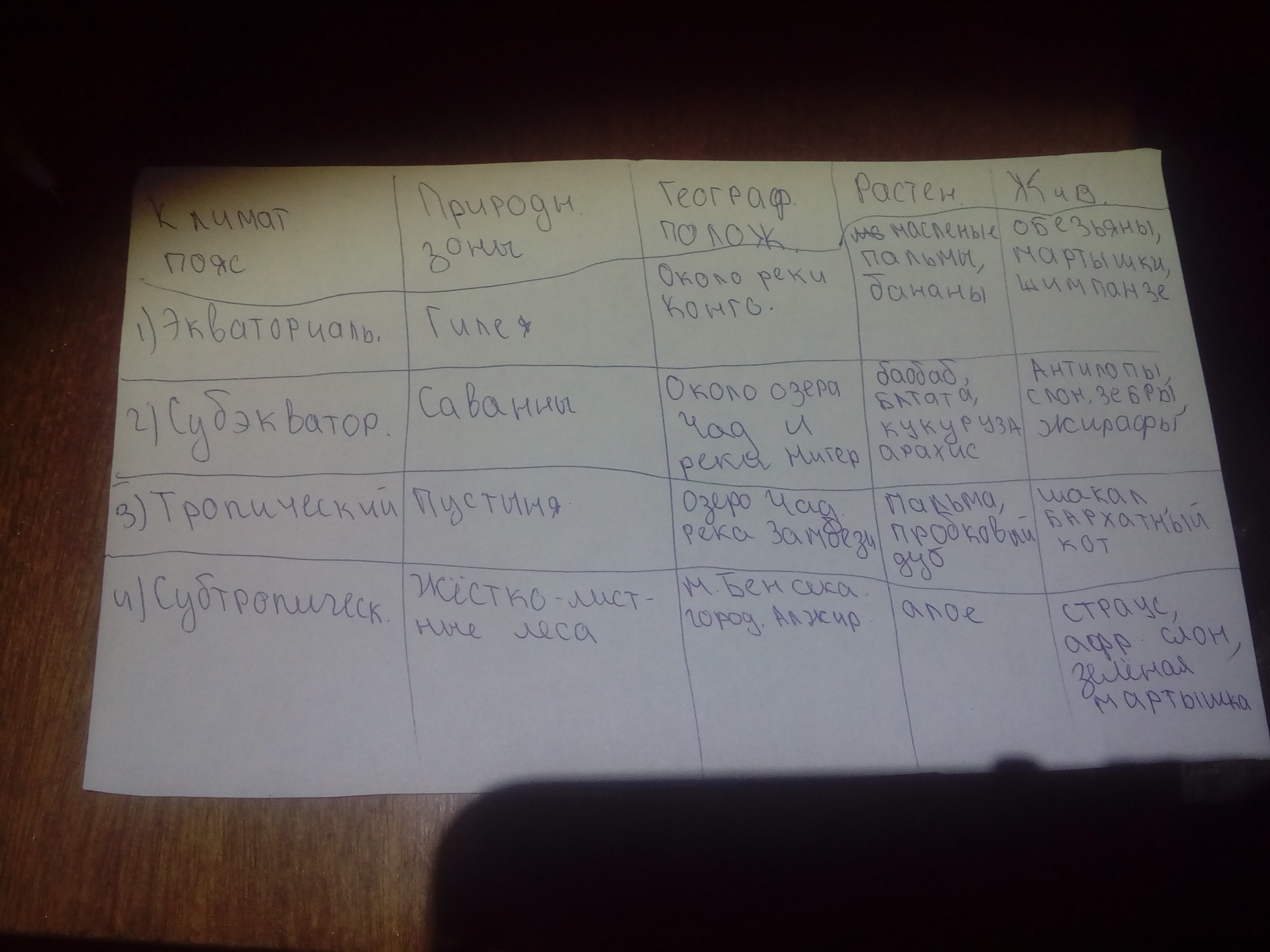 Пожалуйста! Помогите! Нужно сделать таблицу, 8 класс, география природные зоны африки! Даю 50 баллов.Срочно.Заранее благодарю!
