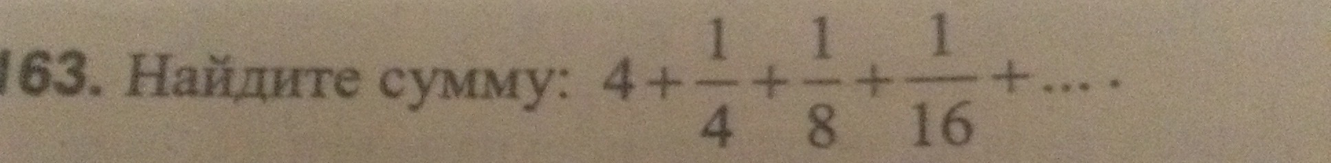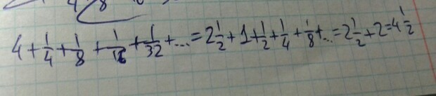 4 + 1/4 + 1/8 + 1/16 + 1/32 + ... = 4 - 1/2 + 1/2 + 1/4 + 1/8 + 1/16 + ... = 4 - 1/2 + 1 = 4 + 1/2