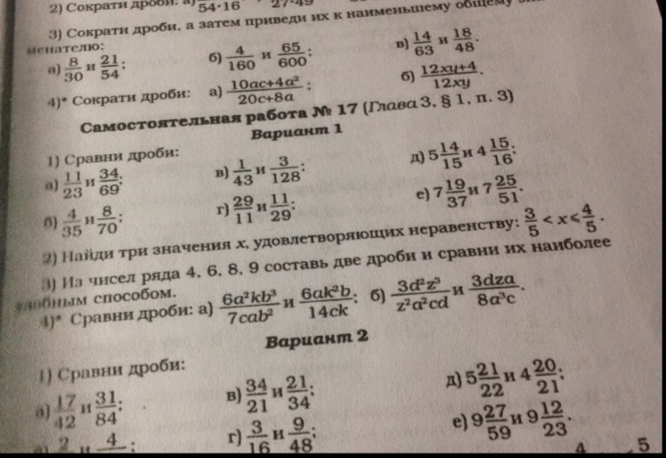 четвертое, А) 6a^2kb^3/7cab^2 и 6ak^2b/14ck если сократить, то будет 6akb/7c > 6akb/14c. Б) 3d^2z^3/z^2a^2cd и 3dza/8a^3c, сокращаем: 3dz/a^2c > 3dz/8a^2c.