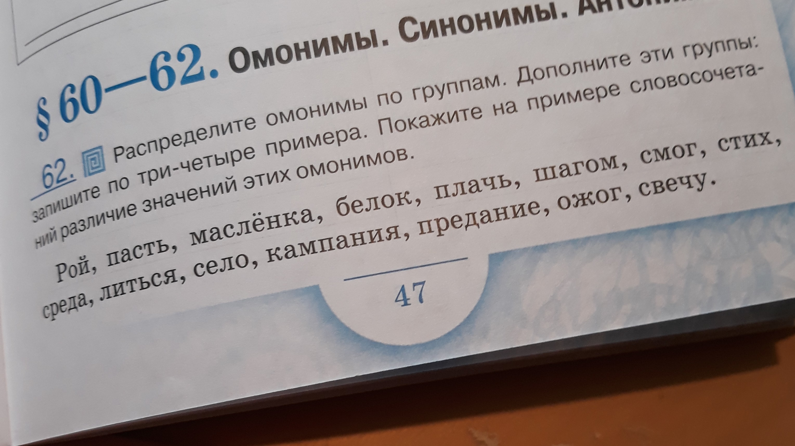 омоформы:белок,шагом,смог,среда,компания,свечу.
