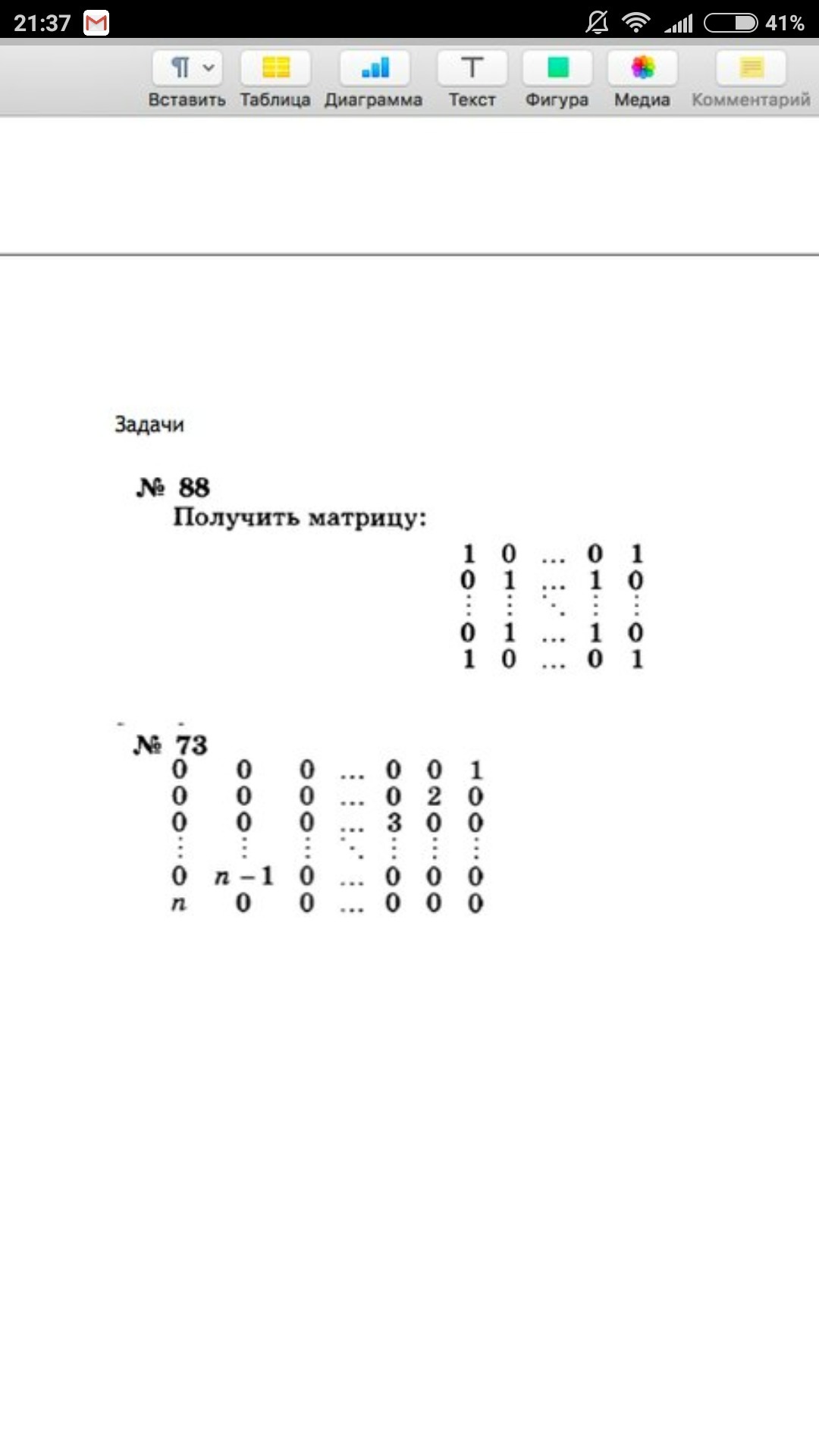 сформировать квадратную матрицу порядка n по заданному образцу. 8 класс массивы НОМЕР 73