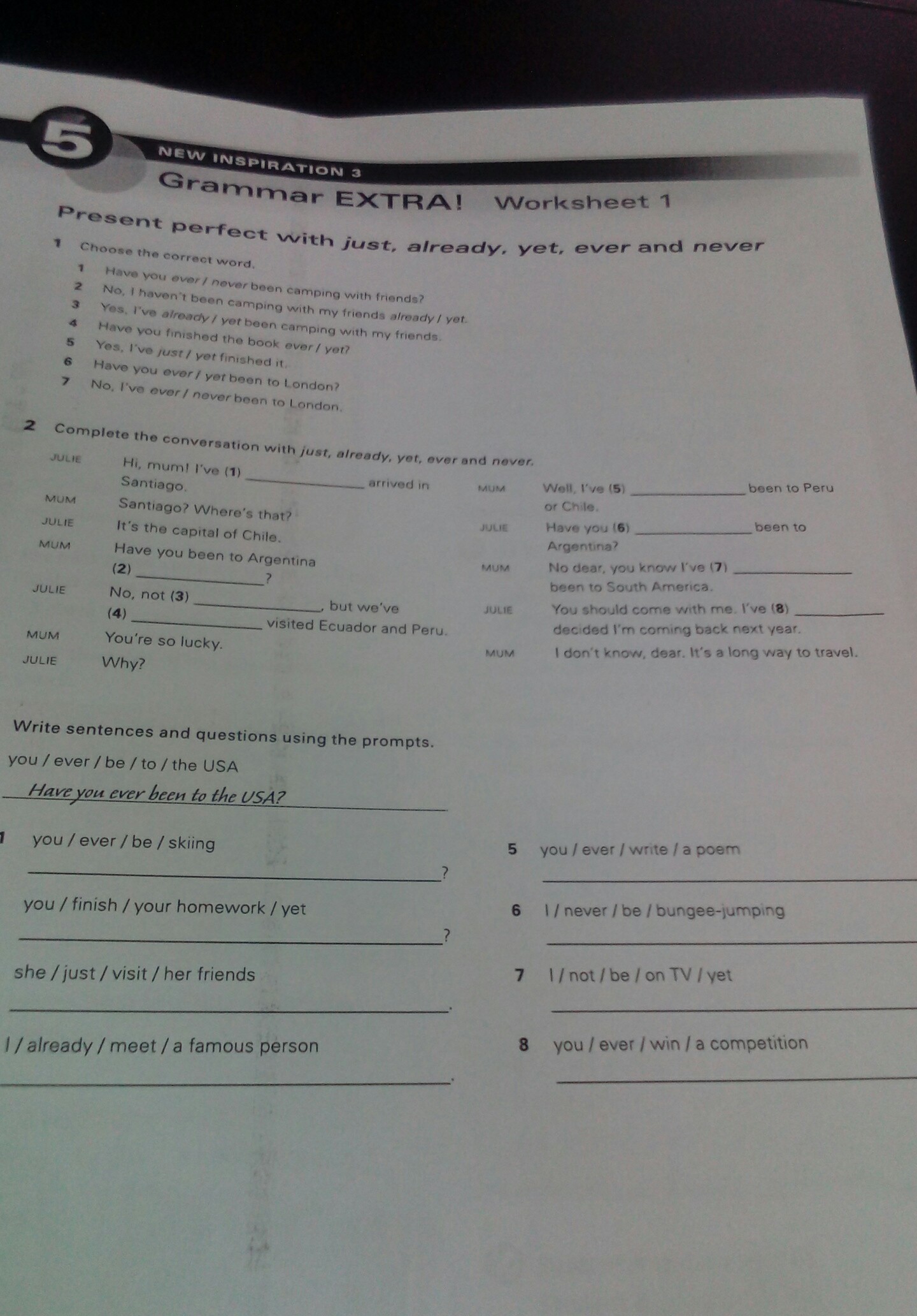 2. 1) just 2) yet 3) yet 4) already 5) never 6) ever 7) never 8) already