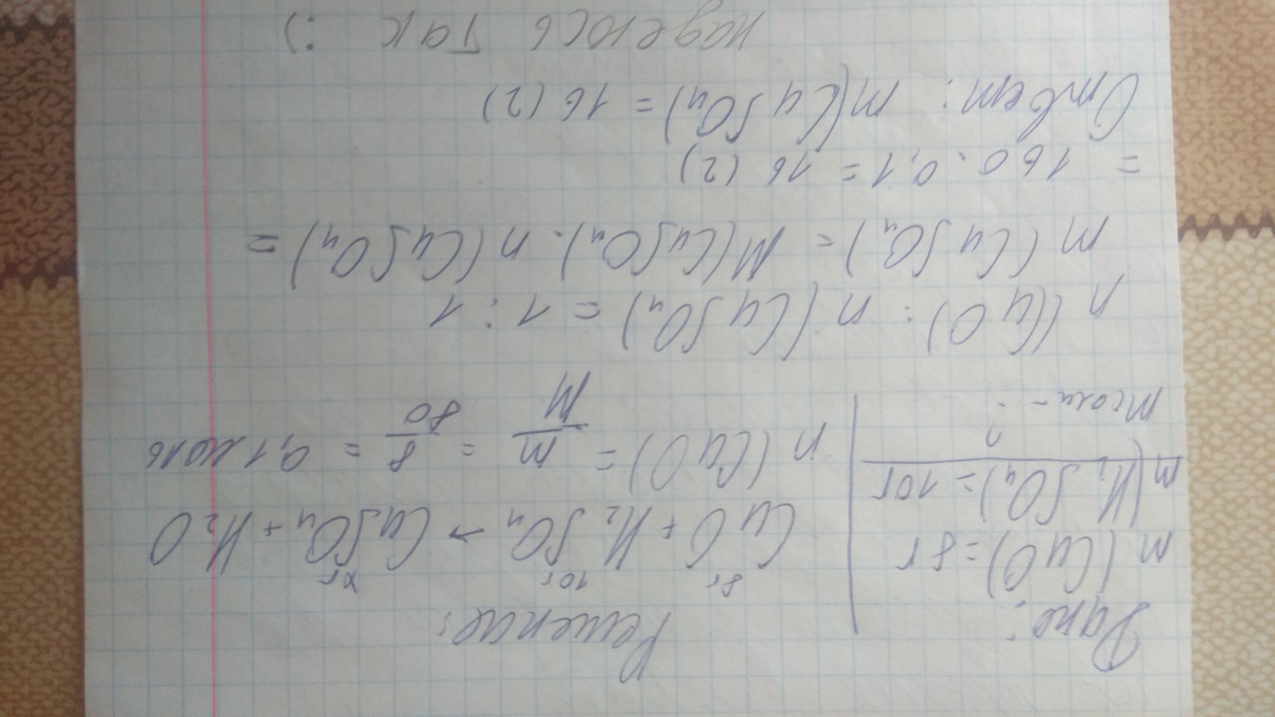 Какая масса соли образуется при взаимодействии оксида меди(II) массой 8 г с раствором, содержащим 10 г серной кислоты?