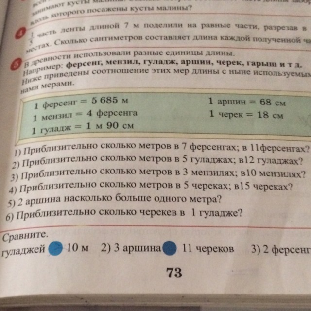 1) 7 ФЕРСЕНГ = 39795 М; 11 ФЕСЕНГ = 62535 М
