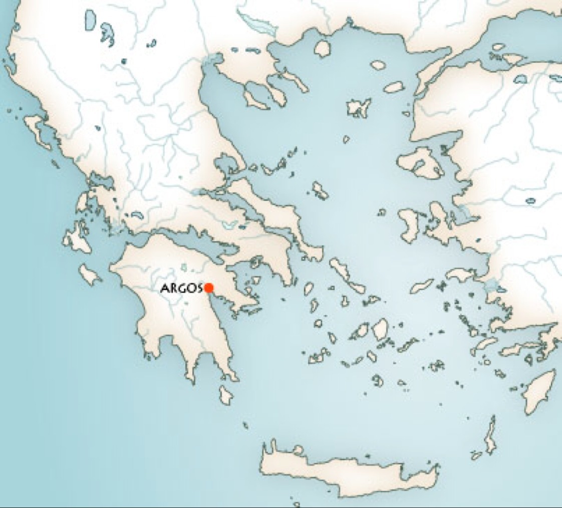 Вроде бы это город Аргос, находящийся на Пелопеннесском полуострове, это юг Греции.