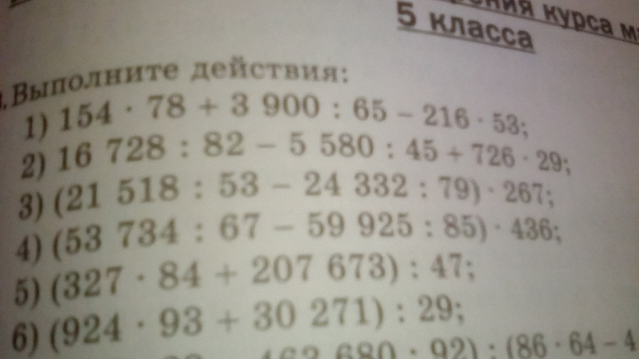 1. 154 · 78 + 3 900 : 65 - 216 · 53 = 254 064