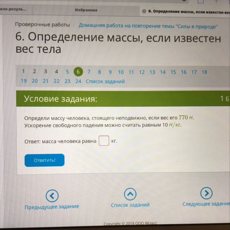 Масса человека равна 77 кг
