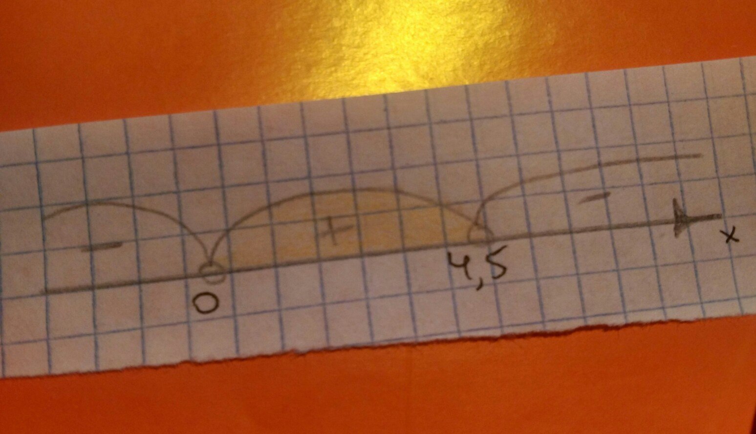 Записываем ответ: х∈(0;4,5)