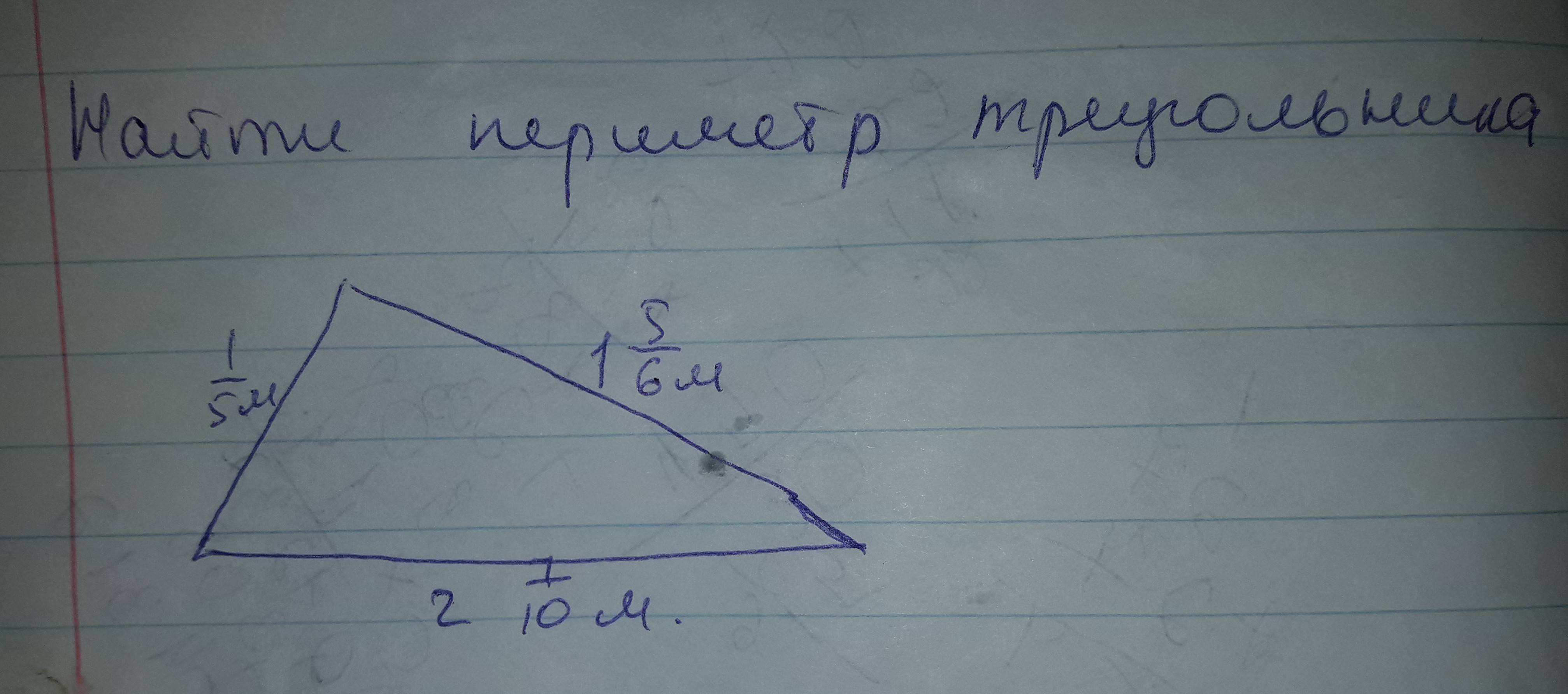 Периметр треугольника это сумма длин всех трёх его сторон. Т.е.AB+BC+CD=P. Решаем, 1/5+11/6+21/10=(6+55+63)/30=150/30=5 см. Ответ: 5 см.