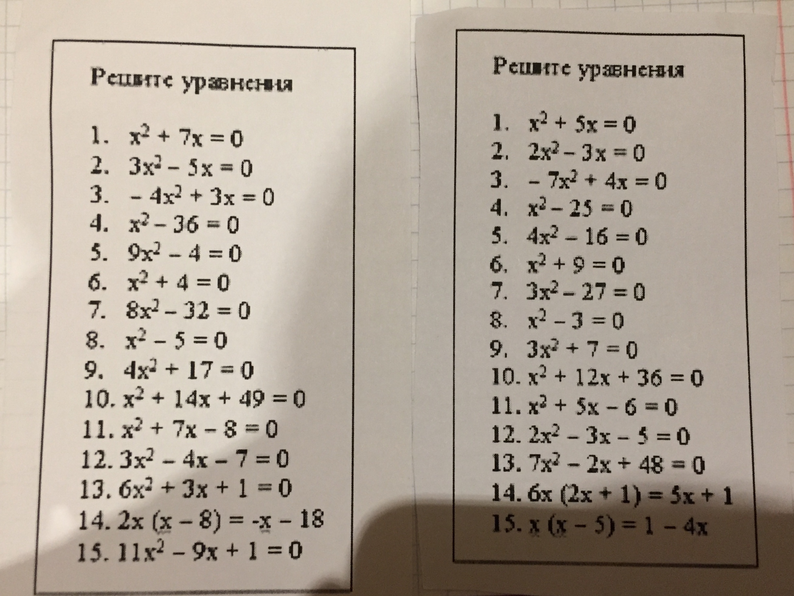 Помогите с алгеброй пожалуйста! 8 класс, квадратные уравнения. Можете решить все уравнения если не сложно, ну или хотяб один листочек, заранее большое спасибо!!!