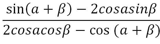 frac{sin alpha cos beta + cos alpha sin beta - 2cos alpha sin beta}{2cos alpha cos beta - cos alpha cos beta + sin alpha sin beta} =  frac{sin alpha cos beta - cos alpha sin beta}{cos alpha cos beta + sin alpha sin beta} =  frac{sin( alpha - beta )}{cos( alpha - beta )} = tg( alpha - beta )