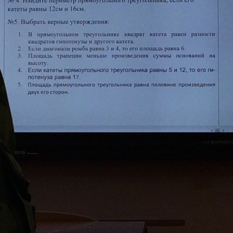 5. Площадь прямоугольного треугольника равна половине произведению двух его катетов.