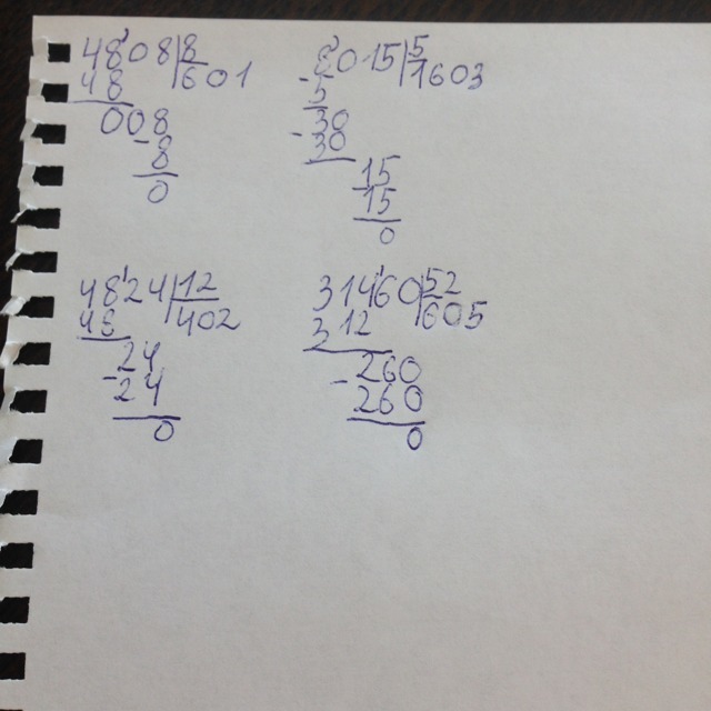 Выполни деление столбиком, используя сокращённую запись и показывая, сколько цифр в неполном частном, с помощью точек. 4808:8 8015:5 4824:12. 31460:52